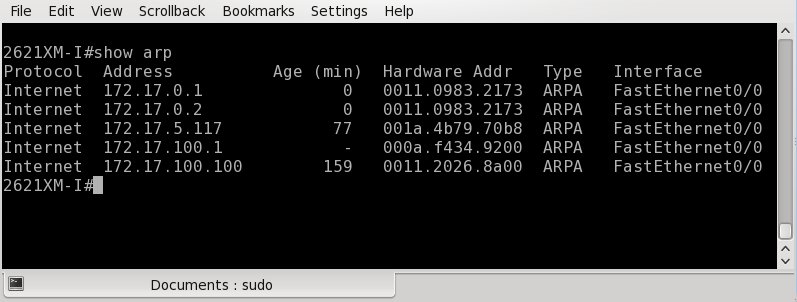 Figure 9 ARP cache of default router- 172.17.0.1 is tied with MAC address of attacker PC 0011.0983.2173