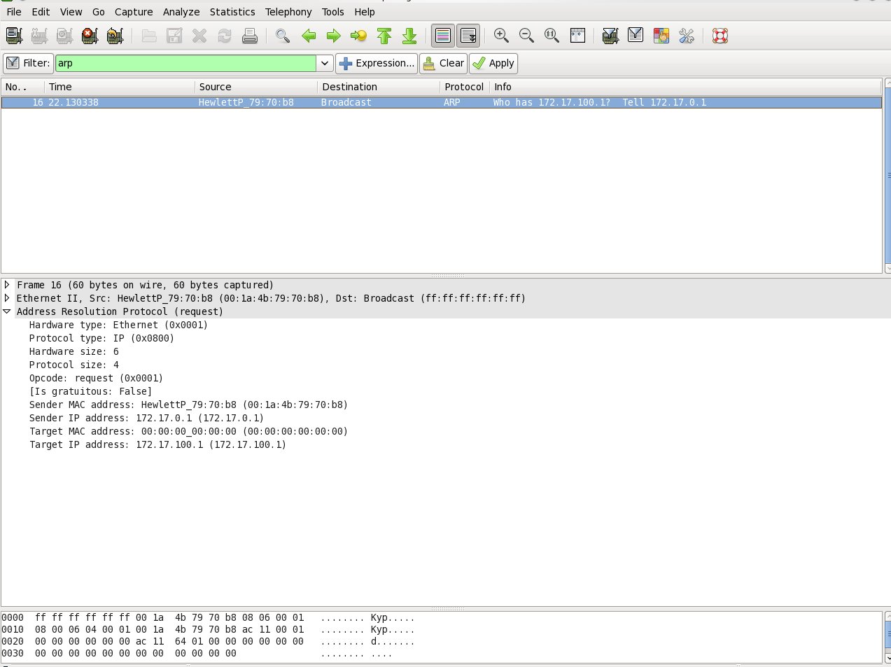 0:11:9:83:21:73 0:1a:4b:79:70:b8 0806 42: arp reply 172.17.100.1 is-at 0:11:9:83:21:73