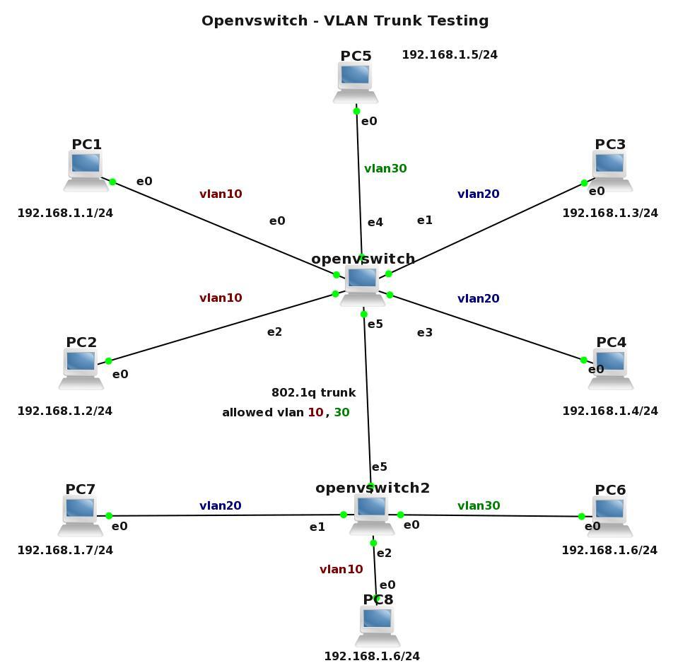 Picture 2 - Openvswitches Connected with a Link Configured as 8021.q Trunk – click image to enlarge